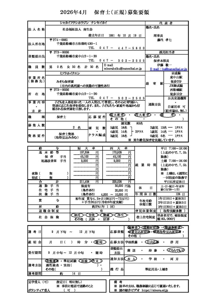 社会福祉法人「南生会」が運営する船橋市認可保育園